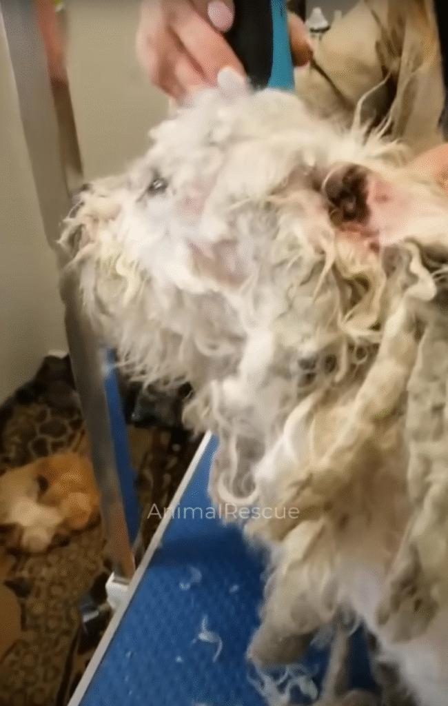 The following days were a slow, painstaking journey. Shadow allowed me to gently touch him, and I began the delicate process of grooming. Each clump of matted fur had to be carefully loosened, sometimes cut away when combing was impossible. He flinched at first, yelped occasionally, and tried to escape, but over time, he began to trust that I would not harm him. Every strand of fur removed revealed not just the scars of neglect, but also the form of a dog who, underneath it all, had a strong, healthy body longing to move freely.