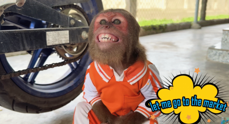 The sun had just risen, painting the little village with golden light. Birds chirped on the rooftops, and the fresh scent of morning dew floated through the air. Today was not like any ordinary day. Today, Dad had planned a very special trip to the market, and he had chosen the best helper he could possibly imagine—his clever and caring friend, CUTIS the farmer monkey.
