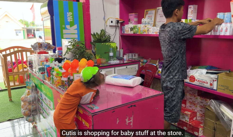 Together, they picked small, safe baby bottles with colorful lids. CUTIS even chose one with a monkey picture on it. “This one is from me,” he said, hugging it tightly.