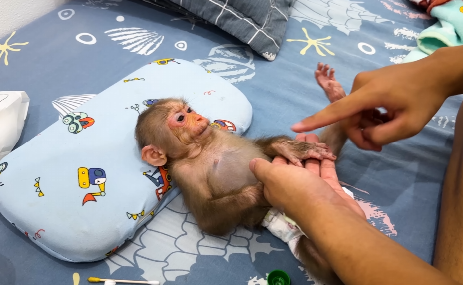 Dad examined it carefully and smiled. “You’re healing well, my strong little monkey.”