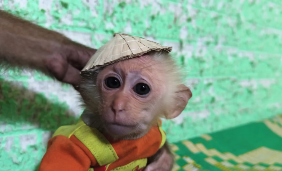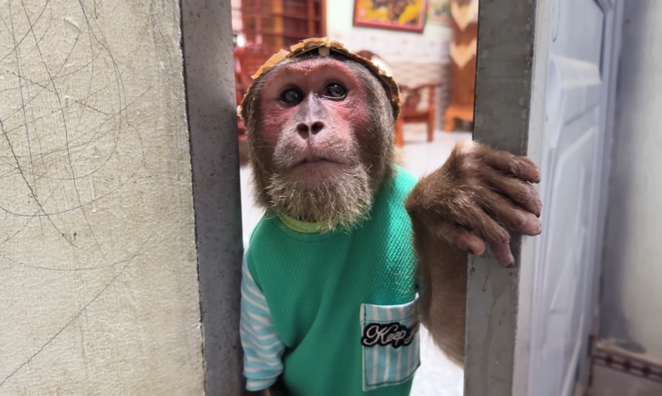 When Lina was brought home for the first time, everyone gathered around her tiny crib. CUTIS wagged his tail slowly, sniffing the baby with gentle care. The baby monkey tilted his head, wide-eyed, fascinated by the little human wrapped in a soft blanket. Almost instantly, the two animals seemed to understand that Lina was special and needed to be protected.