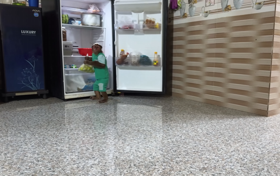But the danger wasn’t over yet. With the storm raging, the wildcat tried again, pawing at the door. CUTIS lunged forward, pressing his weight against the wooden frame, keeping it shut. The monkey, quick as lightning, grabbed a wooden spoon from the table and began banging it on the wall, adding more noise to scare the predator. The family rushed to help, but it was the bravery of CUTIS and the monkey that truly kept the wildcat from breaking inside.