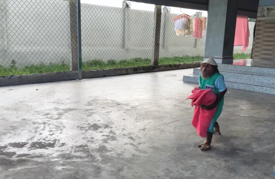 In the days that followed, CUTIS and the monkey grew even more attached to Lina. During the day, when the family worked in the fields, they placed the crib in the shade of a tree. CUTIS would lie close by, eyes scanning the horizon for any sign of danger. The baby monkey would climb the branches above, keeping watch from the treetop like a little guard.