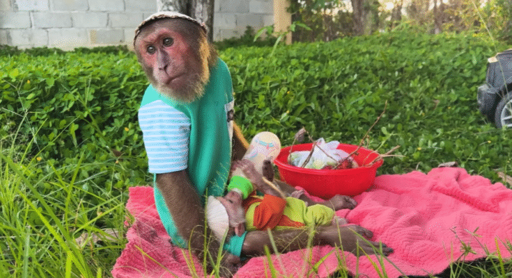 In a quiet little village where the air was always filled with the sweet scent of ripe fruit and the laughter of children, a newborn baby had just joined the world. Her name was Lina, and her parents adored her with all their hearts. Everyone in the house was excited about her arrival, but no one expected the two most surprising guardians to step up—Cute CUTIS, the farmer’s loyal dog, and a mischievous baby monkey who had become part of the family.