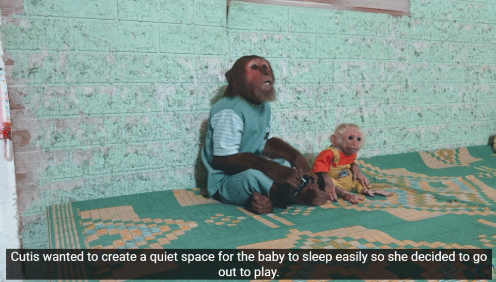 When Lina’s mother returned and saw CUTIS standing guard and the monkey still alert by the crib, she was amazed. From that day on, she began to trust them even more, knowing that the newborn was in good hands—or rather, good paws.