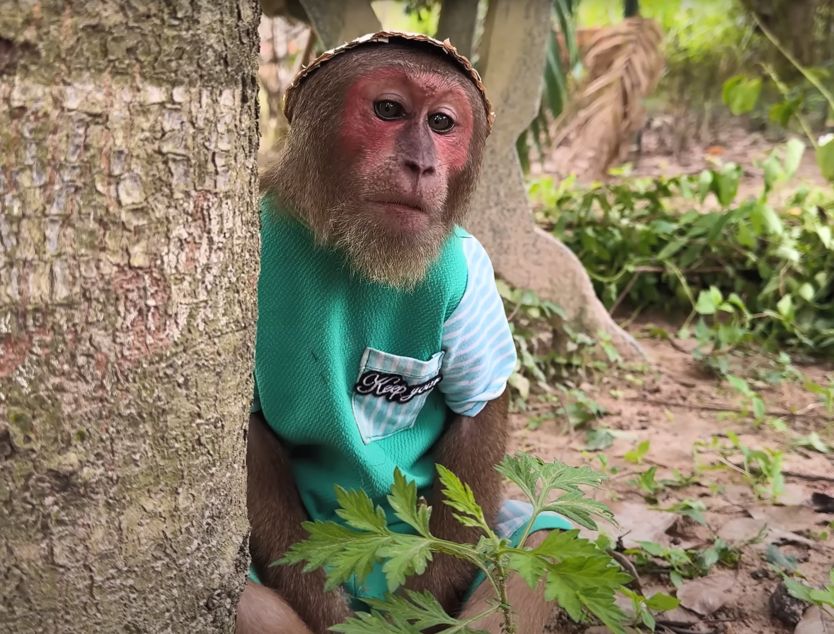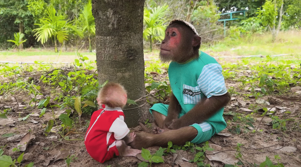 The story of CUTIS’s performance spread quickly through the troop. Other monkeys teased Dad, saying, “Did you really think CUTIS was a forest spirit?” Dad blushed but laughed along. Baby kept mimicking CUTIS’s silly stomping and coconut hat, making everyone laugh even more.