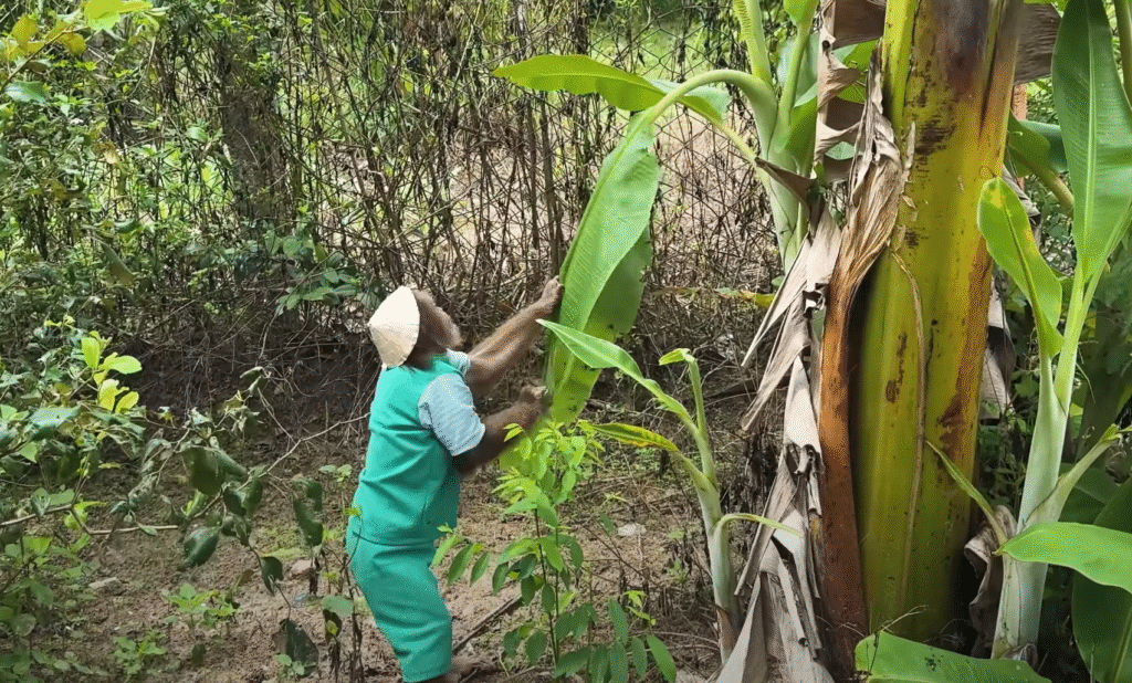 CUTIS began his “show.” He stomped around like a giant, shaking the leaves. He spun the vine around like a lasso and balanced the coconut on his head while hopping on one foot.