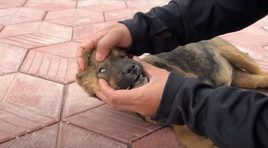 The wind cut sharply that night, carrying with it the chill of early winter. In the shadows of an empty street, a tiny figure stumbled weakly near a trash bin. He was no more than a few months old, a puppy with dull fur clinging to his bones, his ribs clearly visible through his fragile body. His eyes, once meant to shine with mischief and innocence, were clouded with exhaustion and fear.
