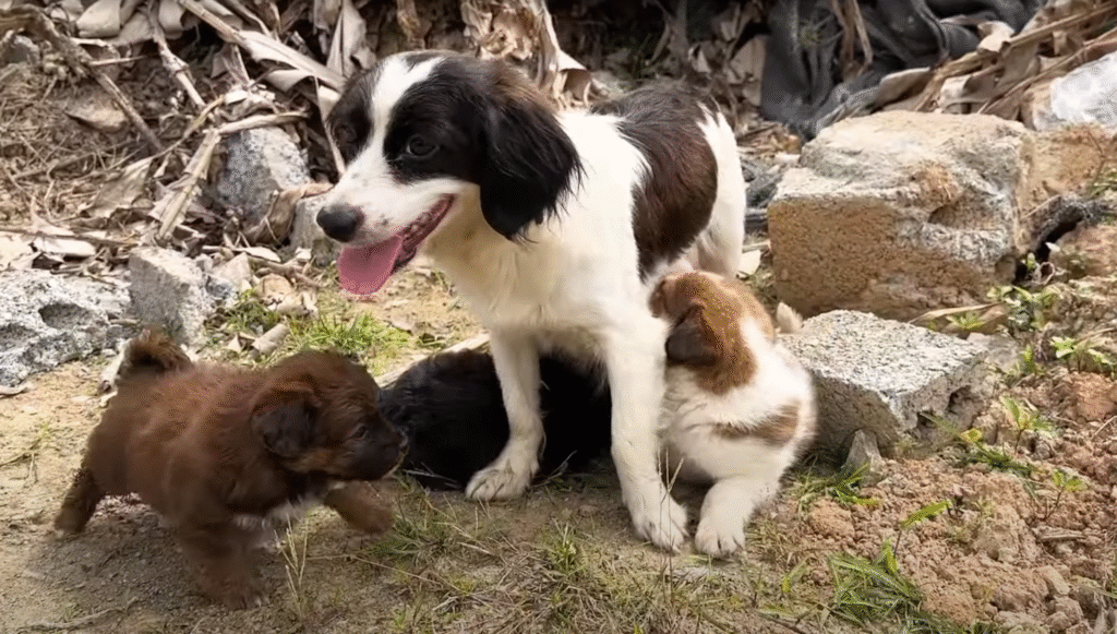 Her ribs showed beneath her thin fur, and her paws were sore from running across the hot, cracked ground. But her exhaustion didn’t stop her. She had a mission that was far greater than her own suffering — she had to save her newborn puppies.