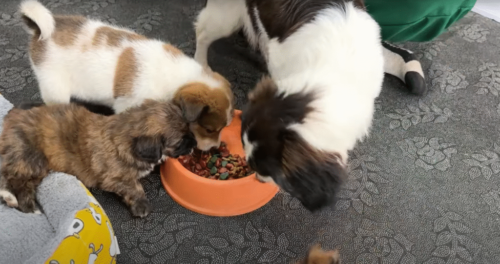 The following days were critical. The mother dog, though malnourished herself, nursed her puppies as best as she could. The rescuer bought her nutritious food, meat, and milk, helping her regain strength. With better nourishment, she produced enough milk to feed her babies.