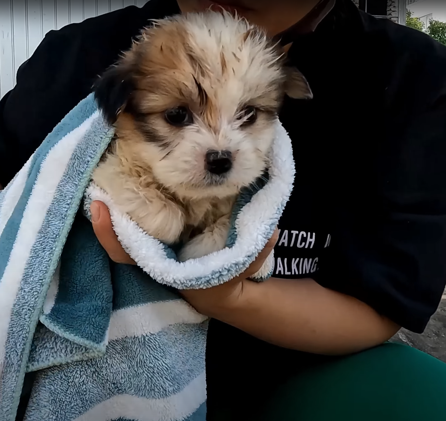 After his stomach was full, he curled up on the towel, eyes heavy with exhaustion. For the first time in what must have been days, he was safe, warm, and fed.