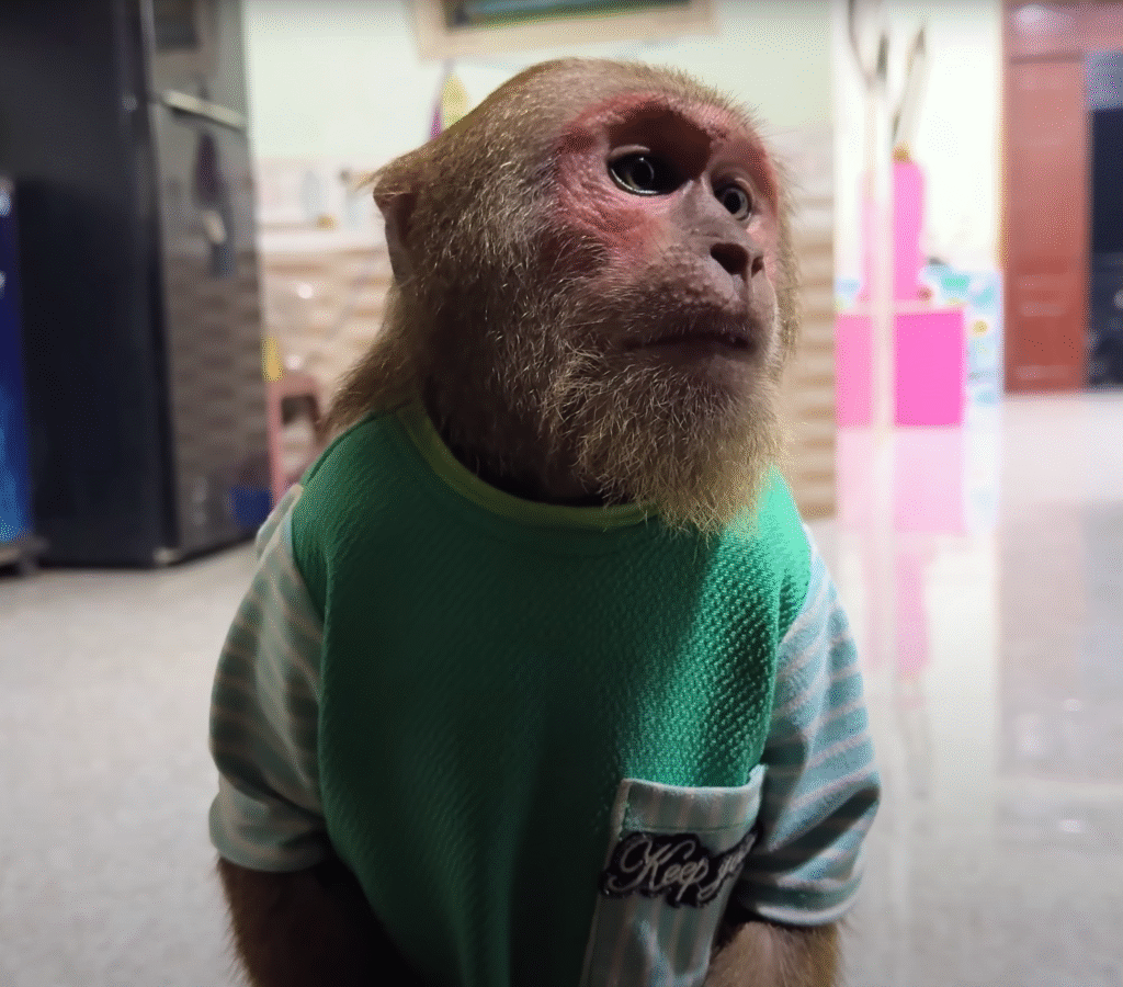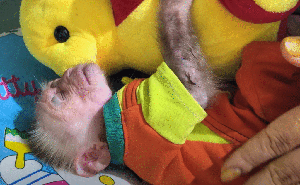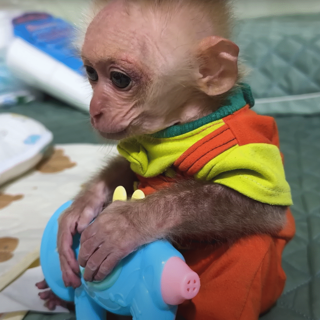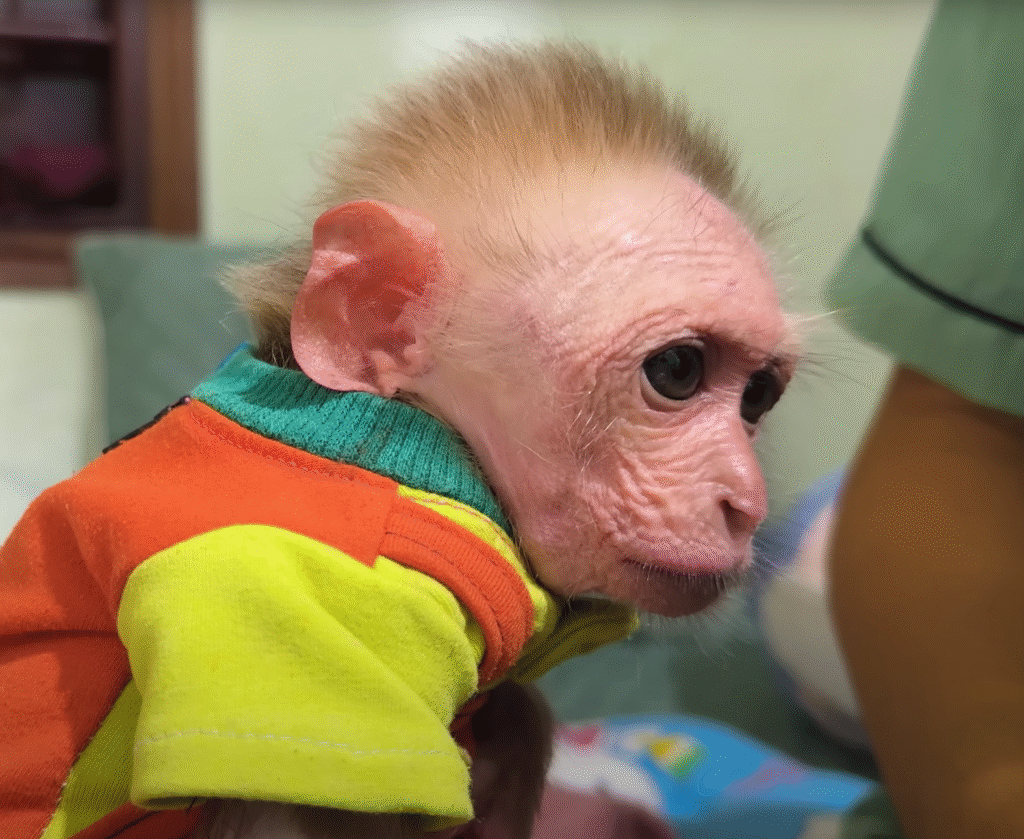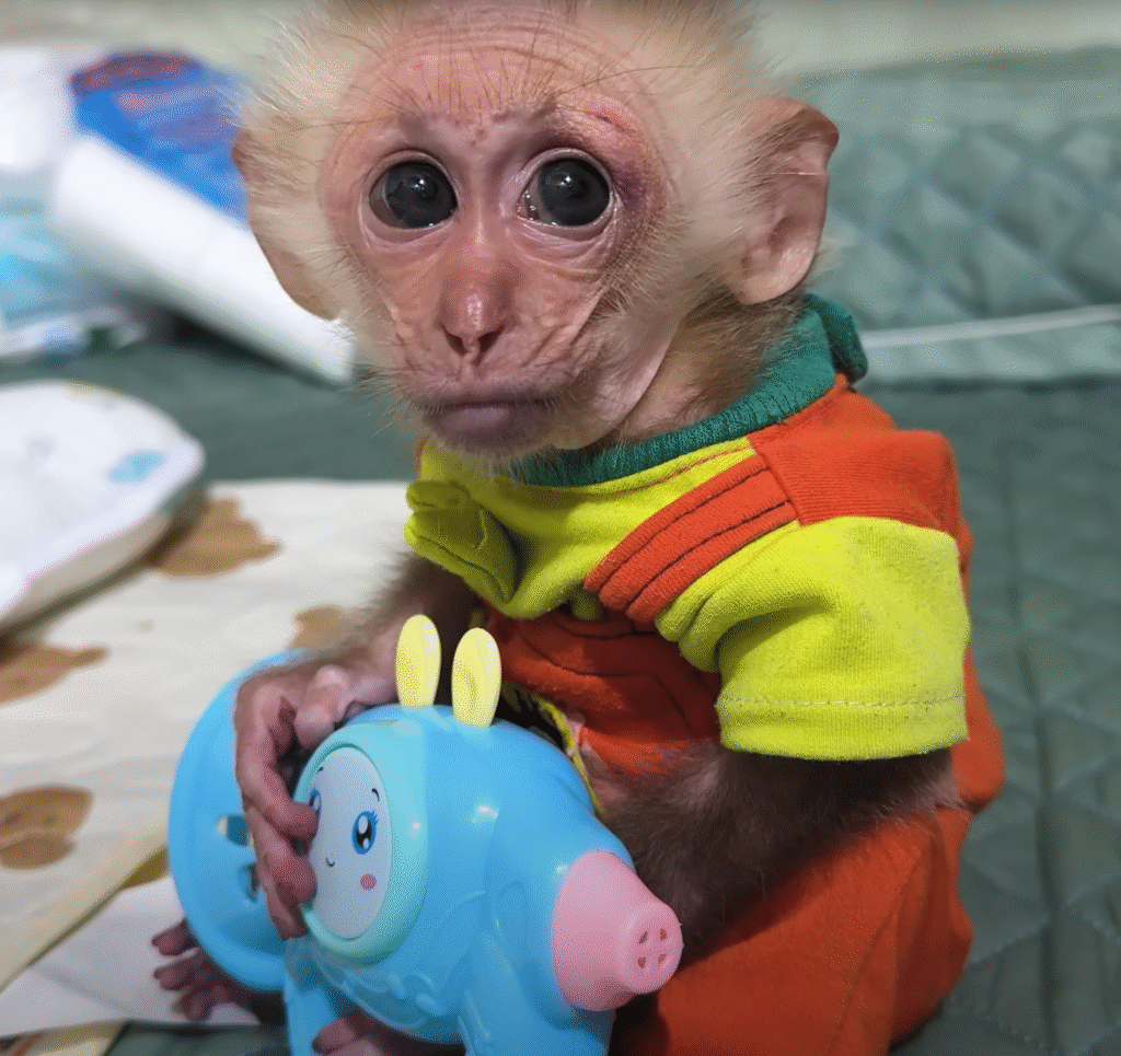 The baby monkey squeaked with delight, clapping his little hands. He finally understoodâCUTIS wasnât trying to cause trouble this time. He was trying to welcome the new family member in his own, very monkey-like way.