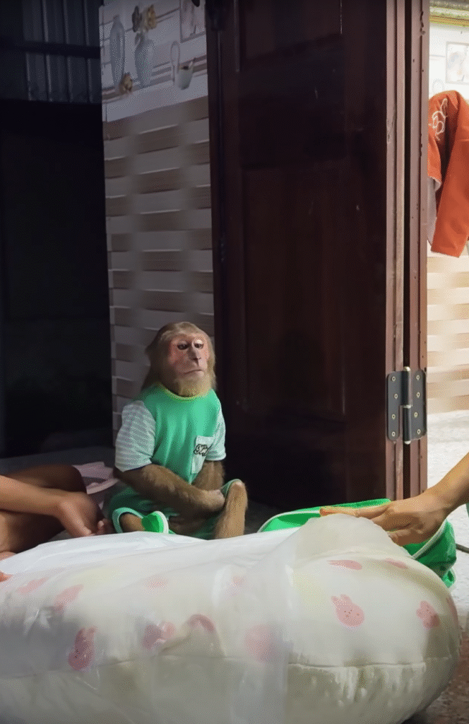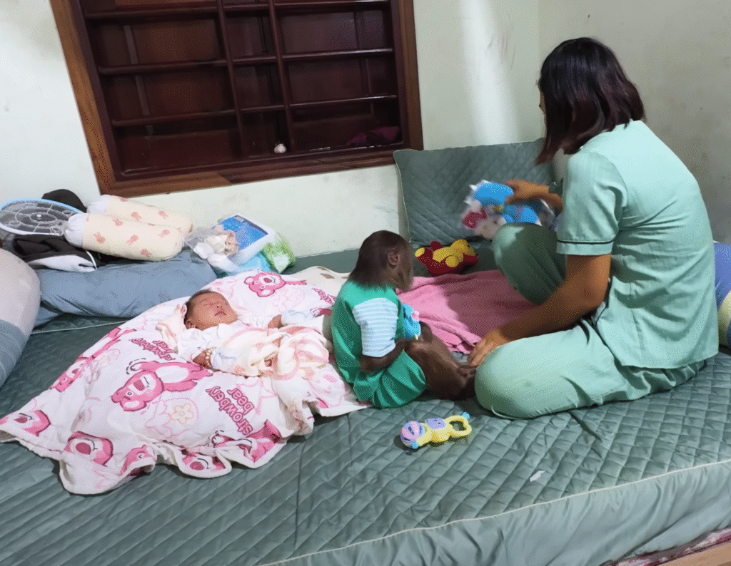 Recently, this family had welcomed a newborn baby, a tiny bundle wrapped in soft cloth, who instantly became the star of the household. Mom adored her little one, and even the baby monkeyâCUTISâs playful companionâwatched over the newborn with innocent curiosity. But CUTIS? He had his own plans. He wanted to give the baby something unforgettable, something that would prove he was more than just a troublemaker.