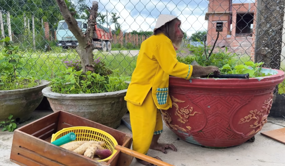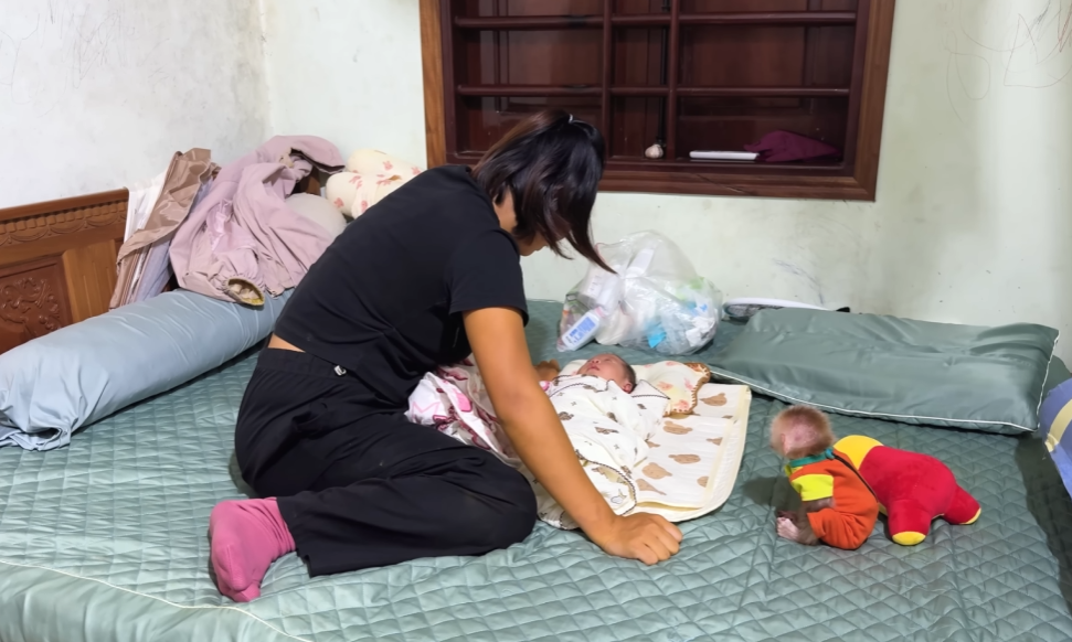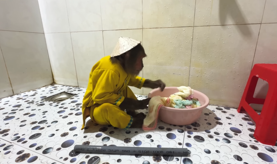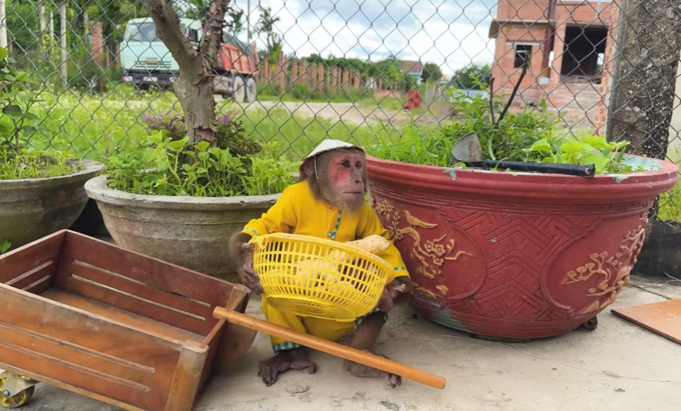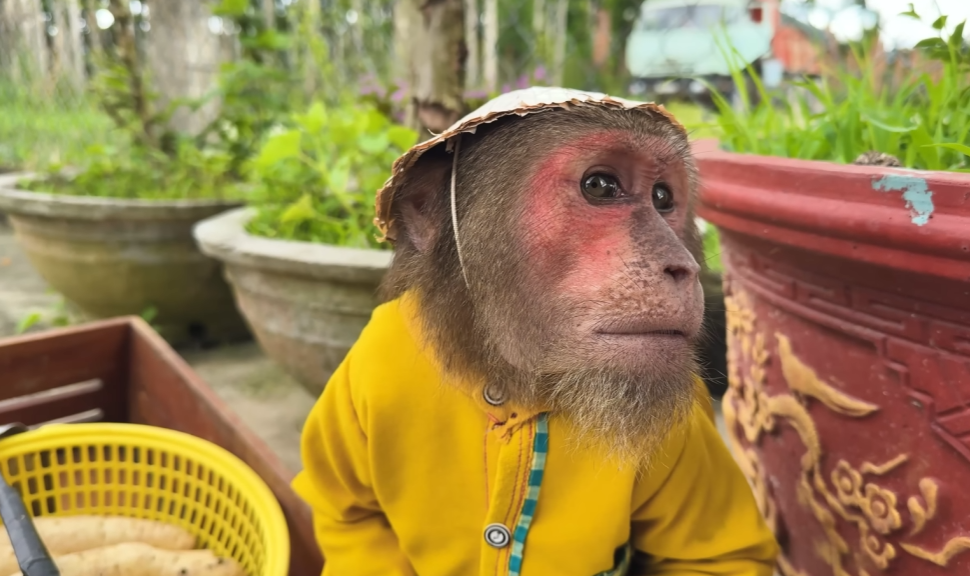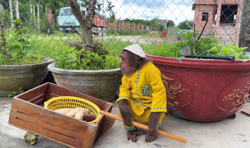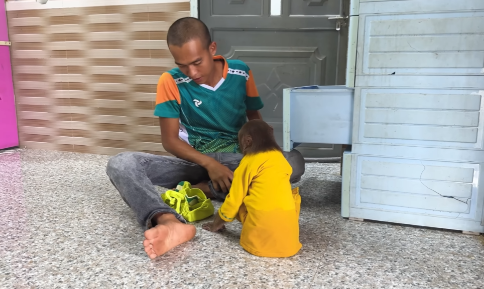 One sunny afternoon, CUTIS decided to play “little nurse.” He carefully tucked a soft blanket around the newborn, making sure every edge was smooth. Then, with a proud smile, he whispered, “Don’t worry, baby, CUTIS is here.” The monkey watched with wide eyes, as though it had just received an important lesson.