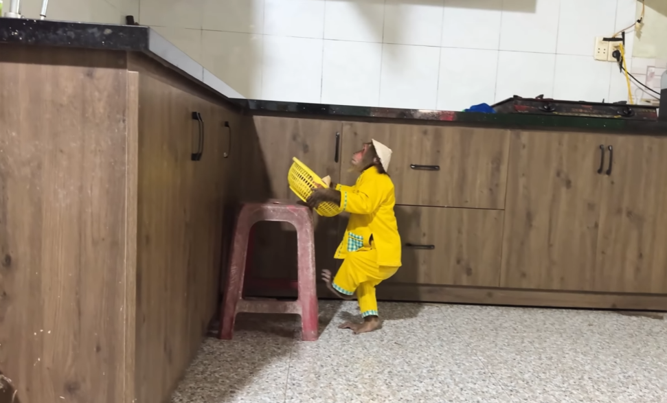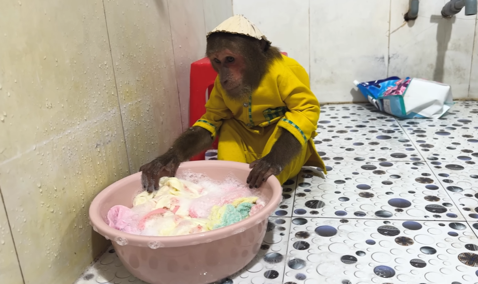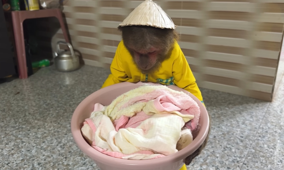 The next moment left Dad bursting into laughter. The monkey, imitating CUTIS, picked up a tiny cloth from the laundry basket and tried to cover the baby too. Unfortunately, it was one of Dad’s socks! The baby wiggled, CUTIS giggled, and Dad laughed so hard his eyes watered.