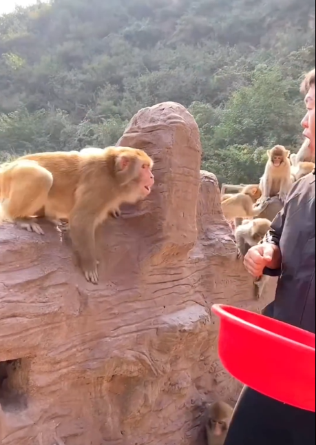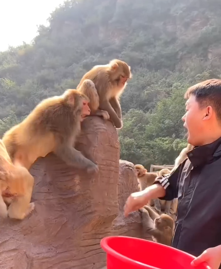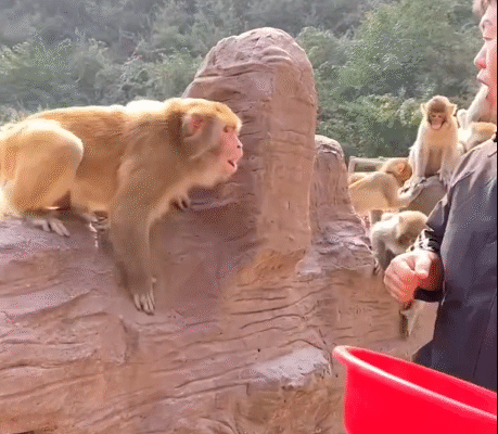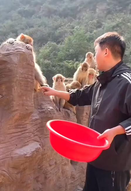 The monkey tilted its head and squeaked, then climbed up onto the edge of the well, balancing itself gracefully. It wasn’t afraid — if anything, it seemed amused by the human’s presence.