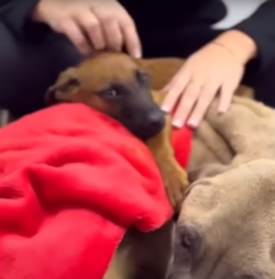 Her body was too weak, her organs failing from exhaustion and starvation. Still, she tried to move whenever she heard her puppy cry. The vet placed him beside her, and Luna licked his head tenderly, her eyes soft with love.