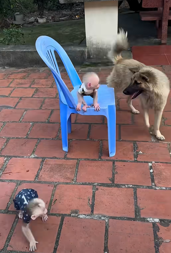 Momo smiled warmly and leaned against Lucky’s soft fur. The golden dog rested his head beside the baby monkey, and for a while, they just relaxed in the warm sunshine.