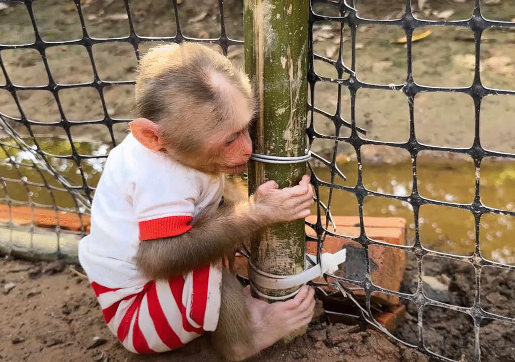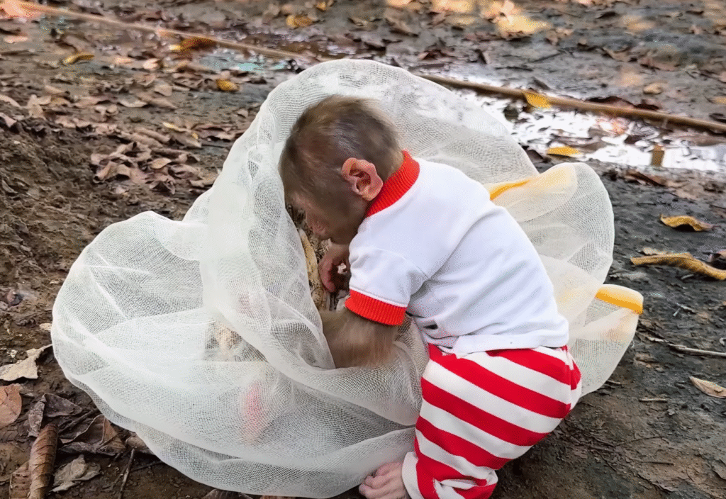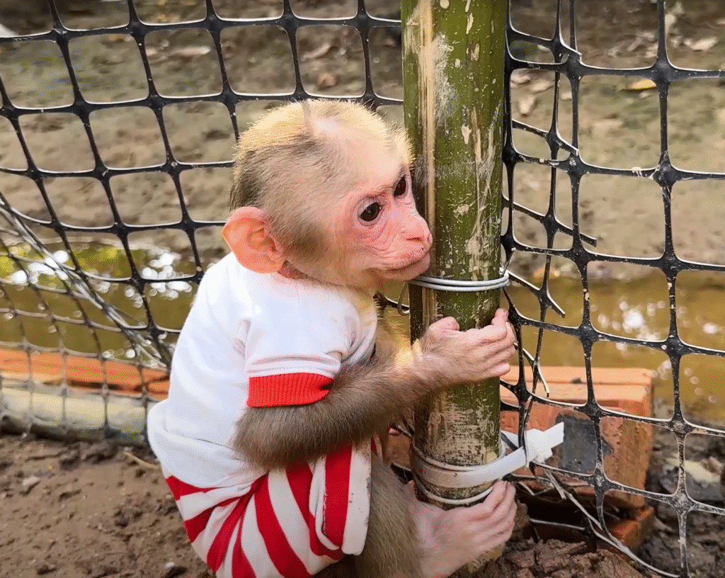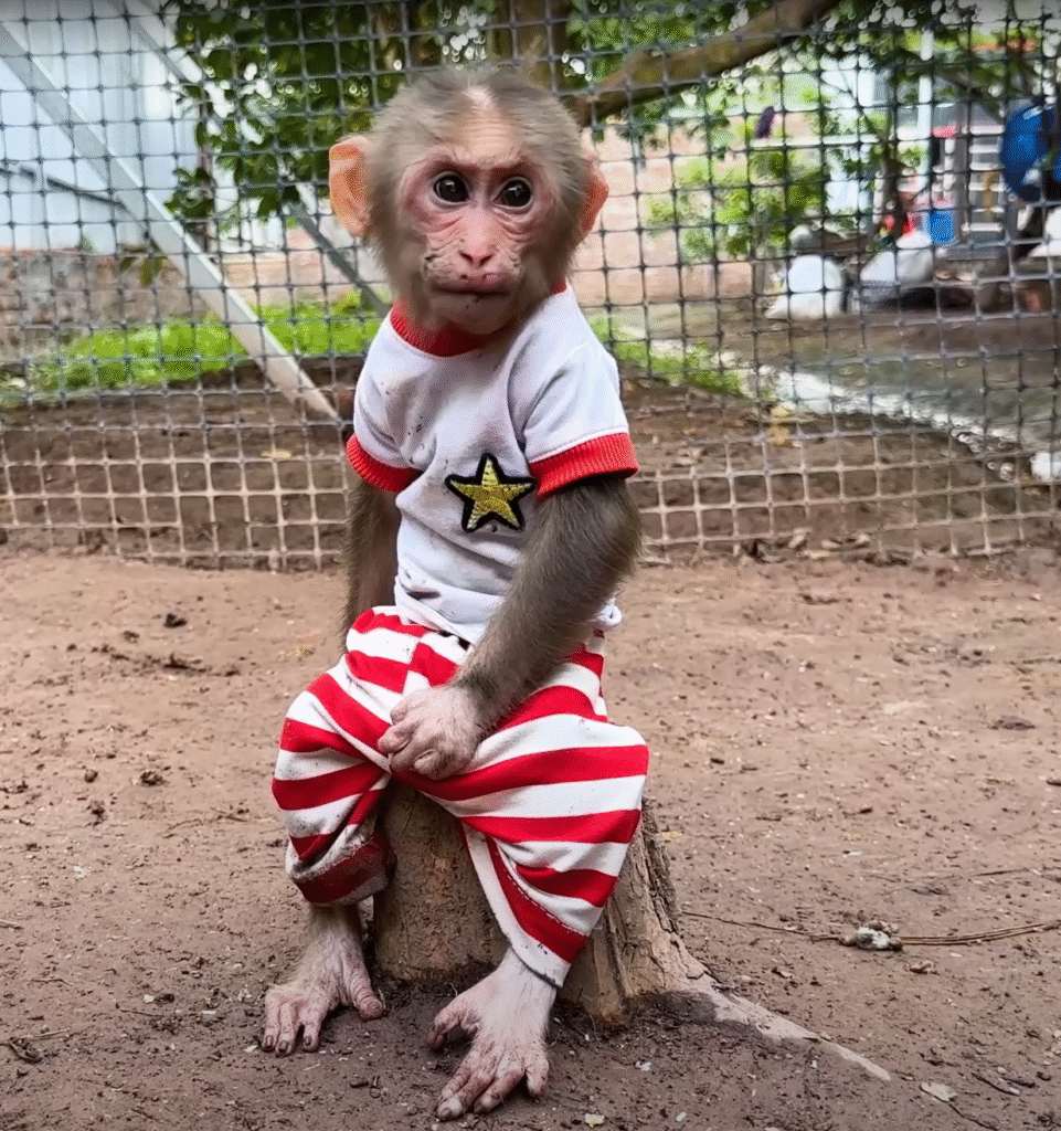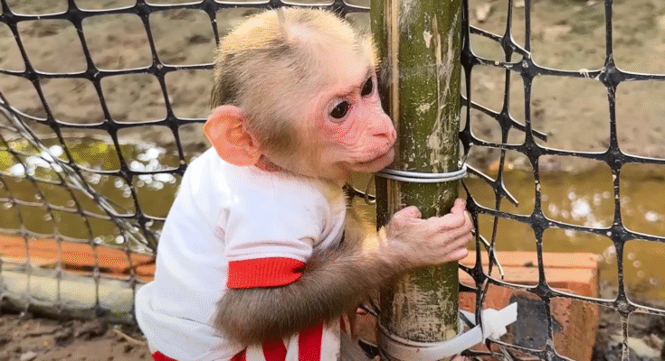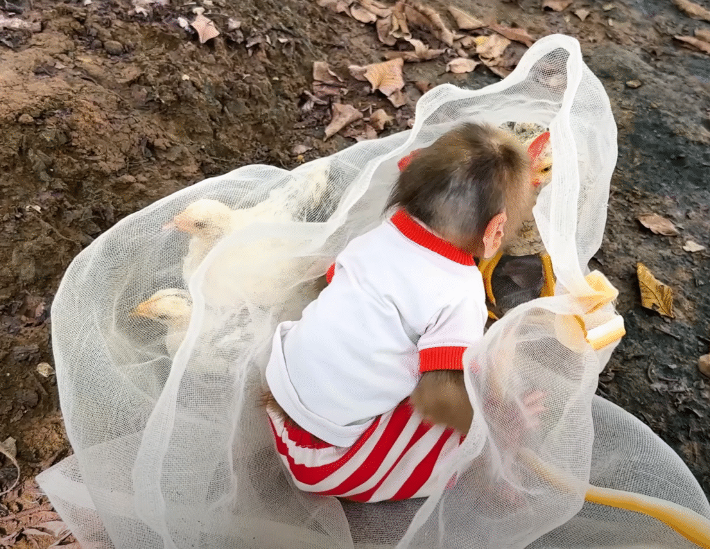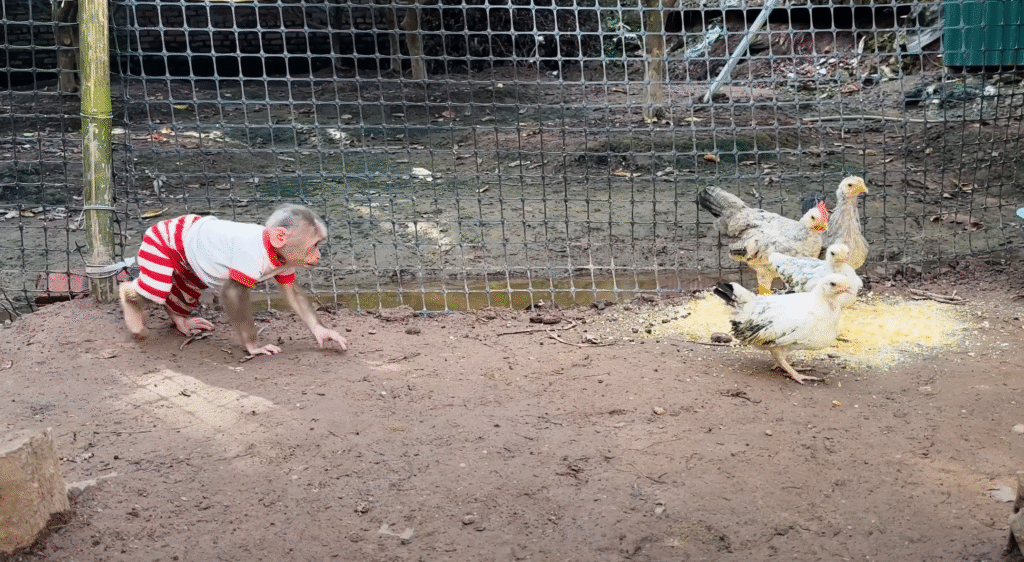 Morning sunlight poured over the small countryside yard where Lala, the cheeky little monkey, was already up to her usual antics. Her golden fur glistened in the light, and her big curious eyes darted around, full of energy and mischief. The day seemed peaceful at first — birds chirped, the wind brushed through the banana trees, and the chickens pecked quietly near the coop. But peace and quiet rarely lasted long where Lala was concerned.
