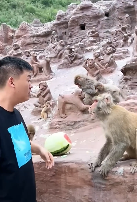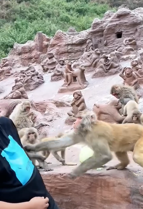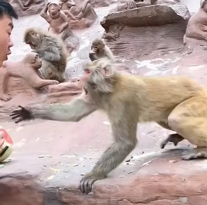 Liáng, ever the brave and impulsive one, rushed forward without hesitation. Huán, sensing the potential for chaos, hesitated, but the flames of anger ignited when the elder, startled by the monkeys’ sudden attack, fell back, spilling his offerings. Kǒng laughed, thinking it was all a game, but the seriousness of the moment escalated.
