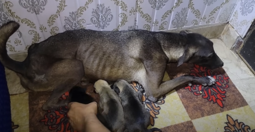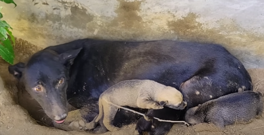 Yet, when she gave birth to her puppies, something inside her shifted. The hunger, the fear, the pain—none of it mattered as much as her little ones. Four tiny beings, vulnerable and helpless, depended entirely on her. Each whimper, each shiver, tugged at her heart in ways nothing else could. She was their protector, their source of warmth, their only hope in a harsh world.