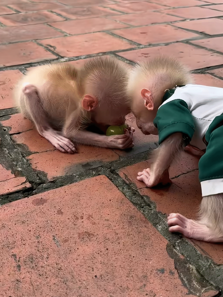 Because sometimes, happiness is as simple as two friends sitting together, sharing fruit, and filling the world with giggles and love. 🍇💞🐒