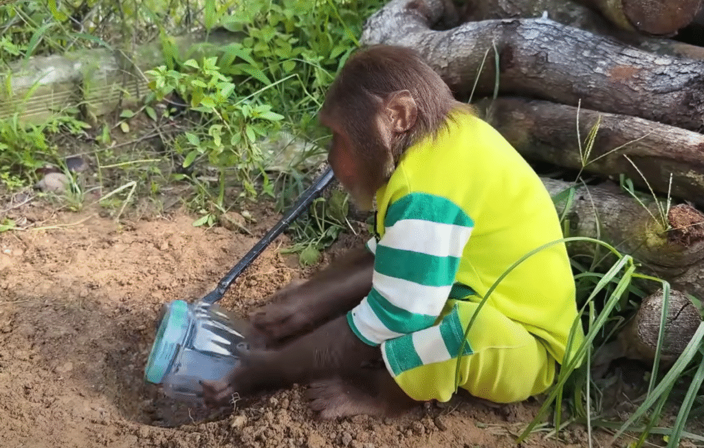 When the farmer later found the toy camera and checked its memory card, he was in stitches. The footage was pure gold—two little monkeys acting like pirates, protecting their “loot.” He immediately compiled it into a short video clip titled: “CUTIS & Baby Monkey’s Secret Treasure Adventure đŸ€©đŸ’â€