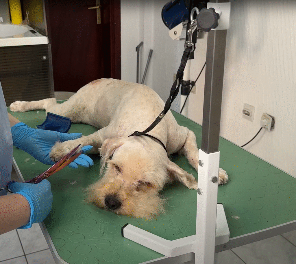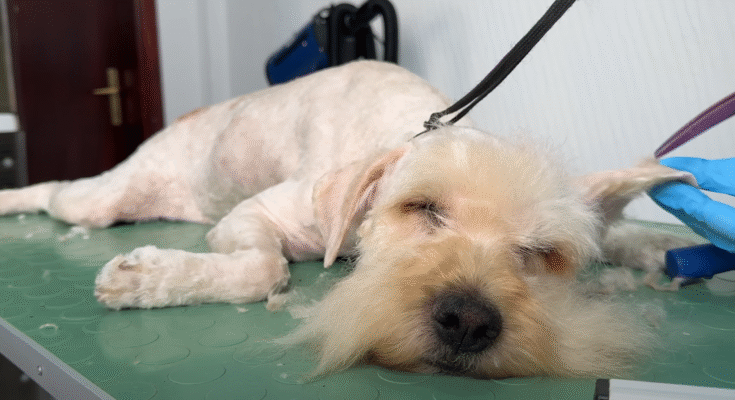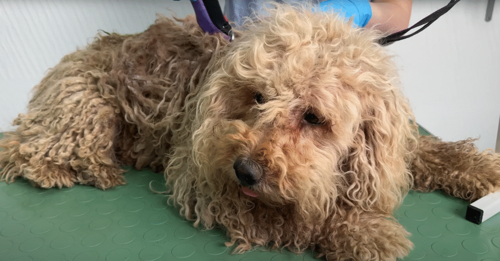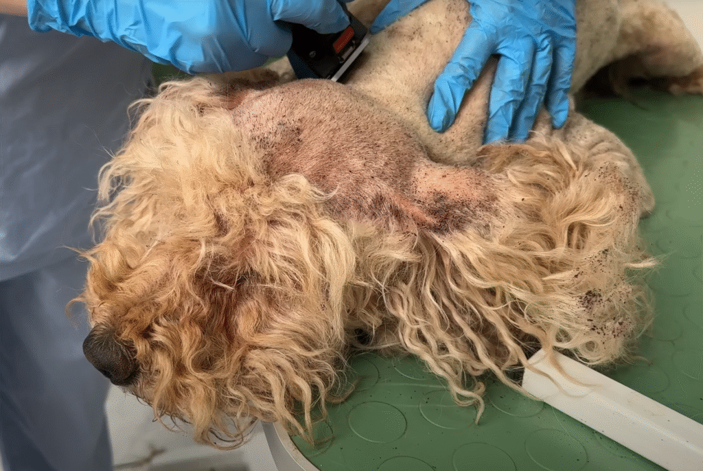 The volunteers at the local animal rescue were used to seeing dogs in rough shape. They had seen everything from abandoned puppies to injured strays, but there was something about Buddy that tugged at their hearts immediately. When he was brought into the shelter, he didn’t bark. He didn’t wag his tail. He barely even looked at the humans who now surrounded him with gentle words and soft hands. He simply sat, crouched in a corner, trembling as if expecting punishment at any moment.