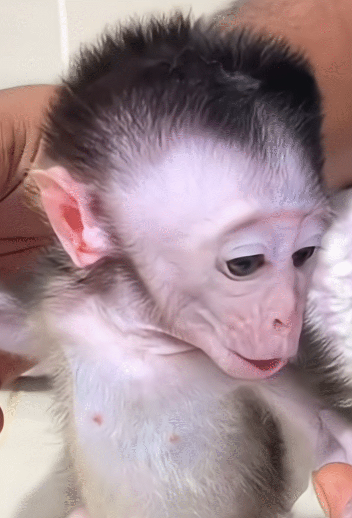 The moment the grape touched her lips, Cici’s mood transformed completely. Her face softened, her tail curled happily, and she even made a soft cooing sound — the baby monkey equivalent of a smile.