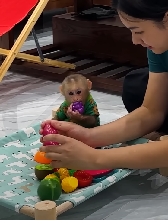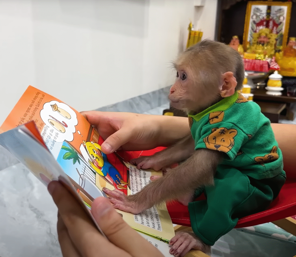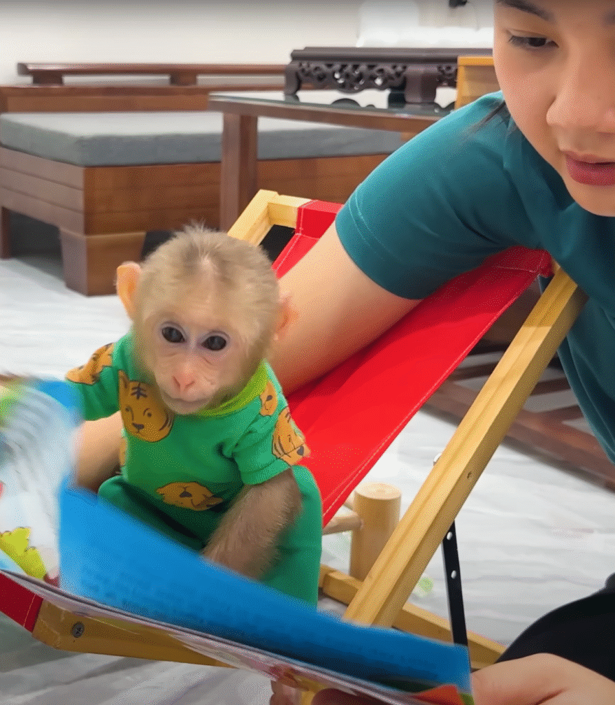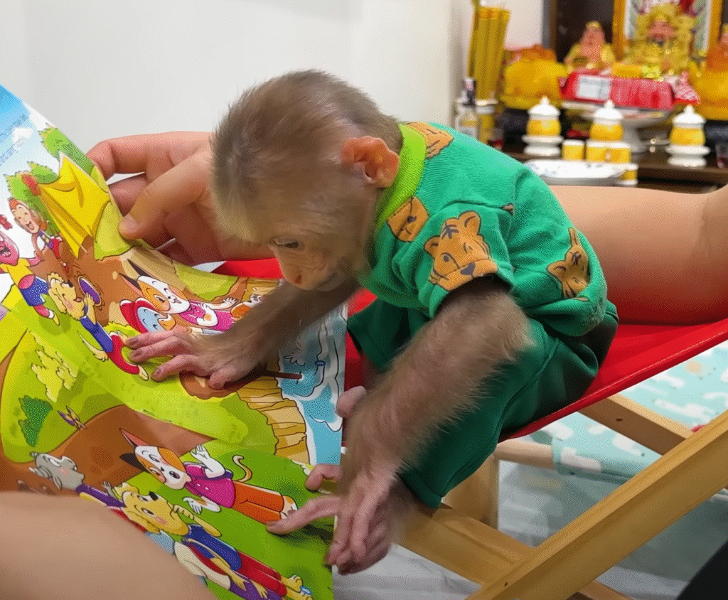 Mama Monkey smiled as she gathered some soft leaves into a basket. “Yes, it does, sweetheart. It’s a beautiful evening — perfect for some quiet time together before bed.”