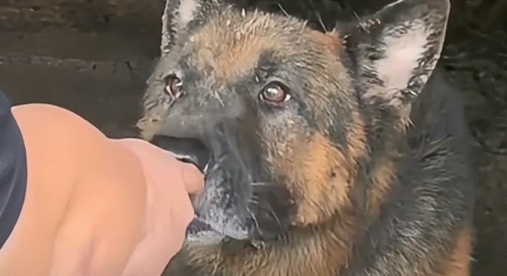 The dog growled weakly when she came closer, baring his teeth out of fear, not malice. Clara knelt several feet away and slowly tossed a piece of chicken toward him. He sniffed it suspiciously, his nose twitching. Then hunger won — he gulped it down in one bite.