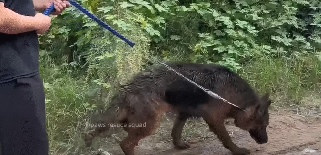 It took three long hours before he let her slip a leash gently around his neck. Even then, he trembled, expecting pain. But instead of hitting him, Clara whispered kind words. For the first time in a long while, someone’s touch was gentle.