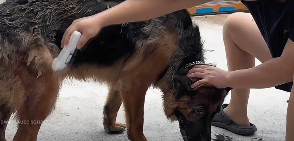 Shadow was immediately taken to the vet. The diagnosis was heartbreaking: severe mange, malnutrition, dehydration, and multiple infections. His body was on the brink of collapse.