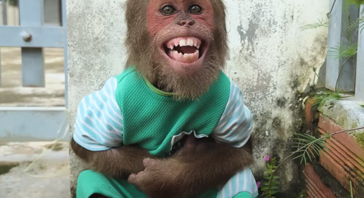 The baby monkey, still small and clumsy, tilted her head curiously. She didn’t quite understand what “cleaning up” meant. She thought maybe it was another kind of game. CUTIS clapped his hands together and made a little chirping sound, signaling the start of their new mission.
