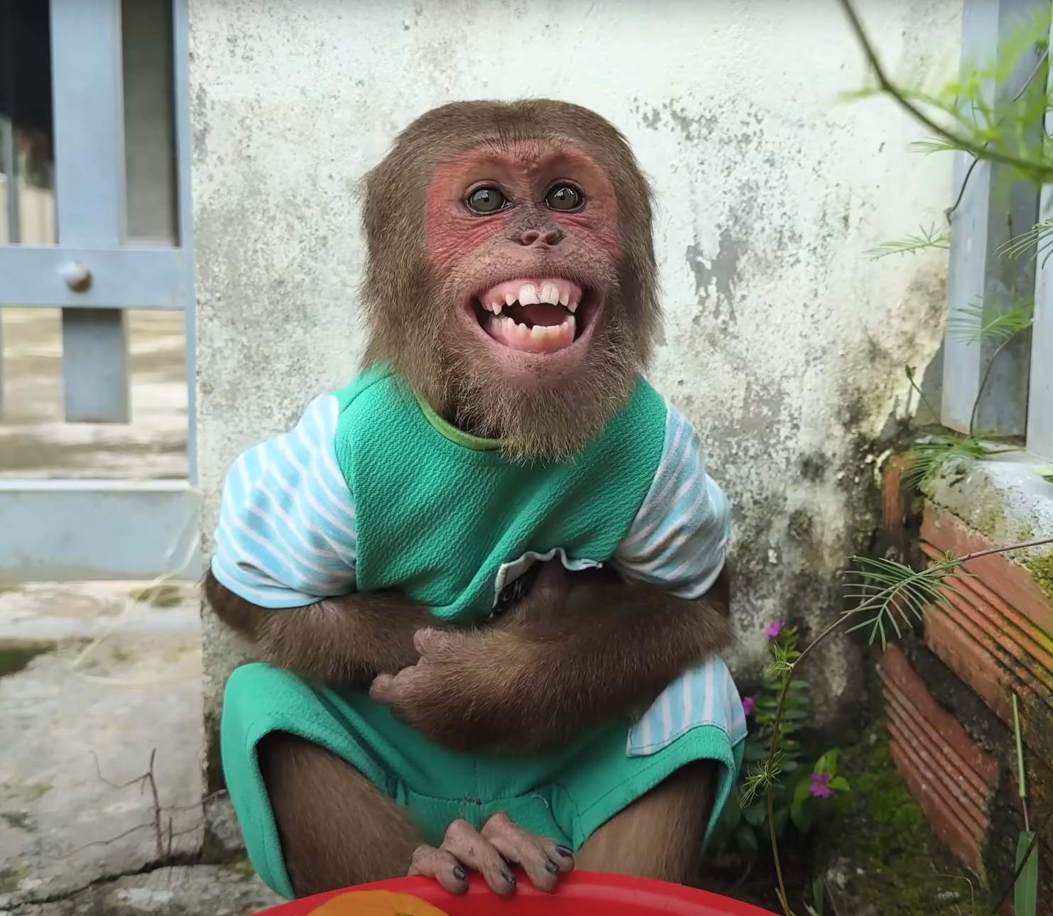 CUTIS was known for being inventive. He wasn’t just a playful monkey; he had a way of turning every moment into a performance. After eating, he looked at the mess and then glanced at his baby companion with that spark in his eyes — the kind that said, “Let’s make this fun!”