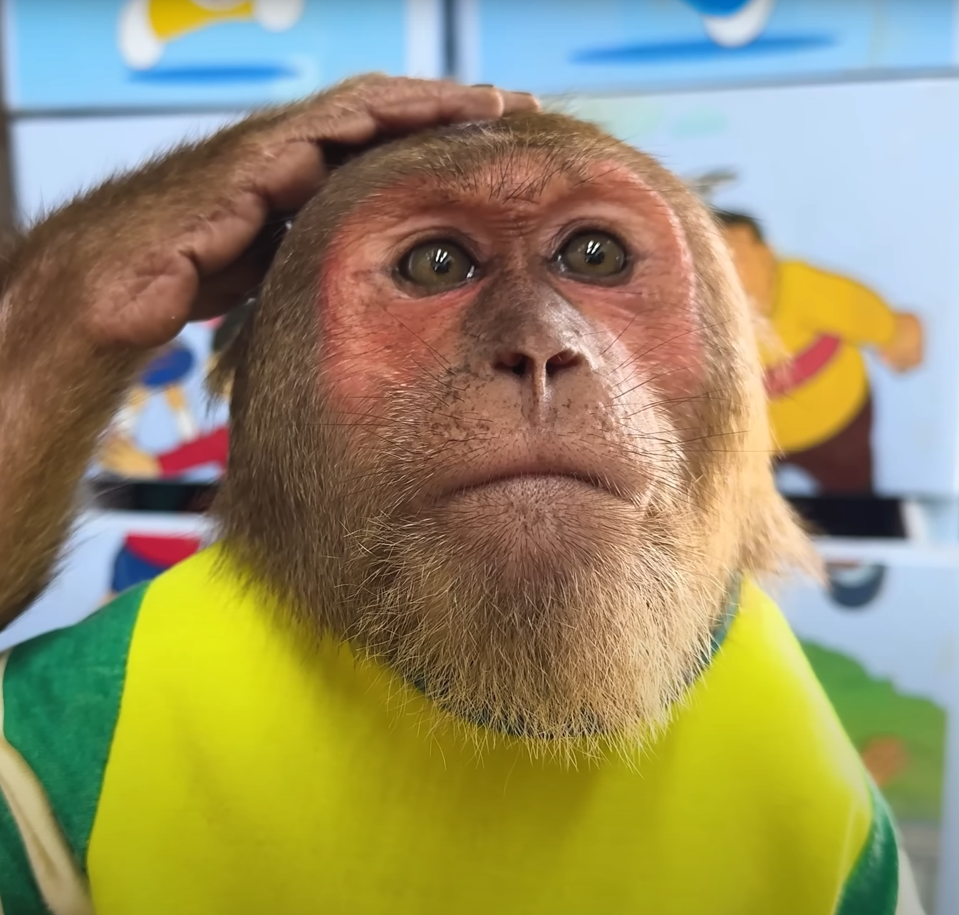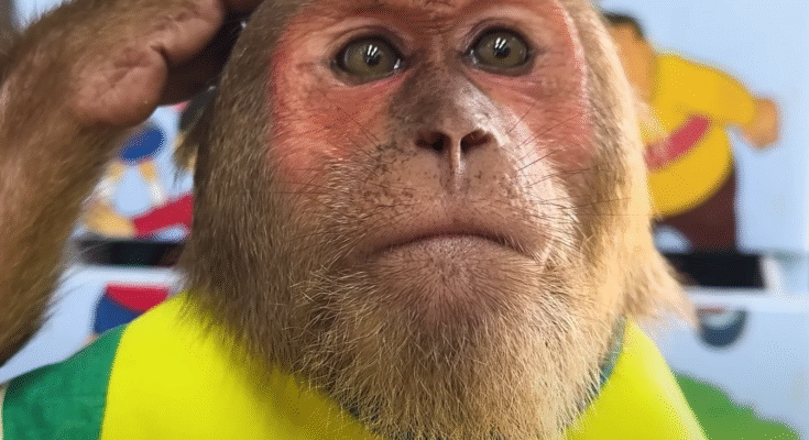 The baby monkey nodded, covering her mouth with both hands.