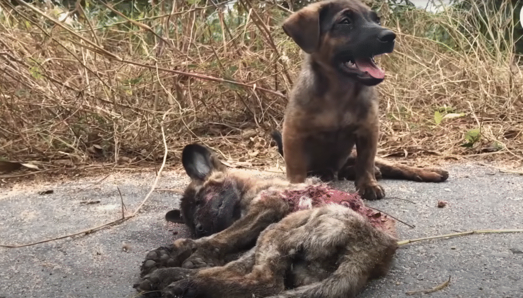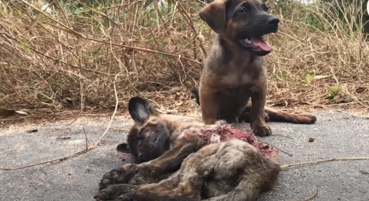It was a calm afternoon on a busy street where cars honked and people hurried about their day, paying little attention to the small lives that shared the road with them. But among the noise and motion, a heartbreaking scene unfolded—one that would remind everyone who witnessed it of the purest form of love and loyalty. A little dog, trembling and frightened, stood beside his injured friend who lay motionless on the pavement after being struck by a passing vehicle.