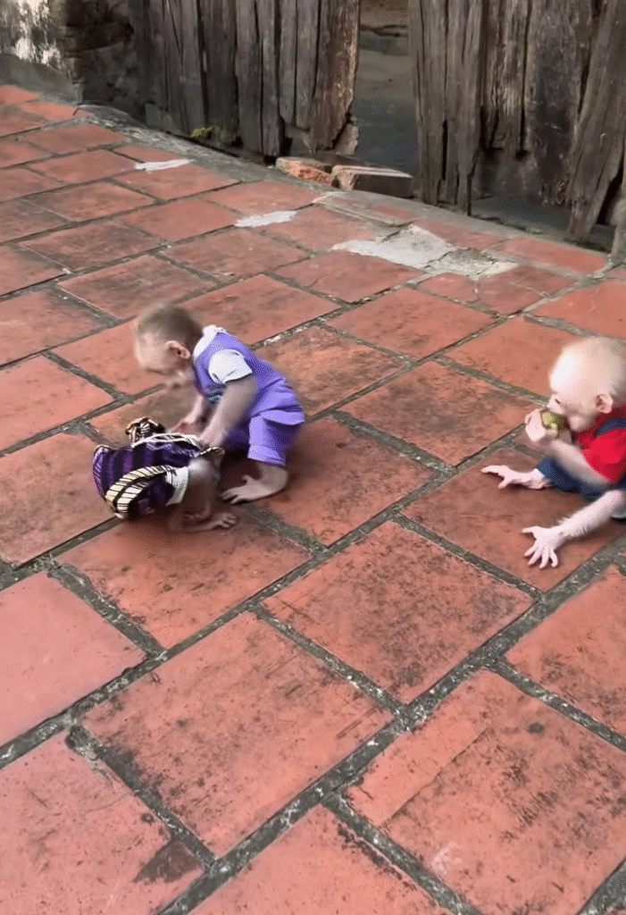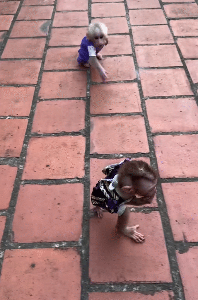 They played their favorite game — “follow the leader.” Bon would climb up a tree, and Kevin would follow, mimicking every move. When Bon swung from a branch, Kevin tried too, though sometimes he’d lose balance and squeal. But Bon was always ready to catch him mid-fall, pulling him close again.