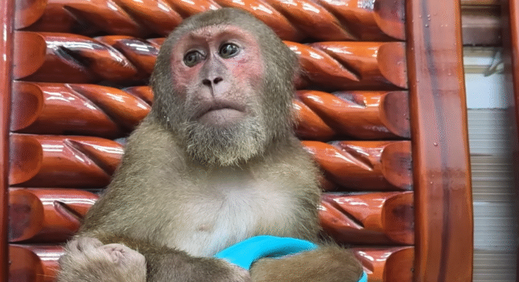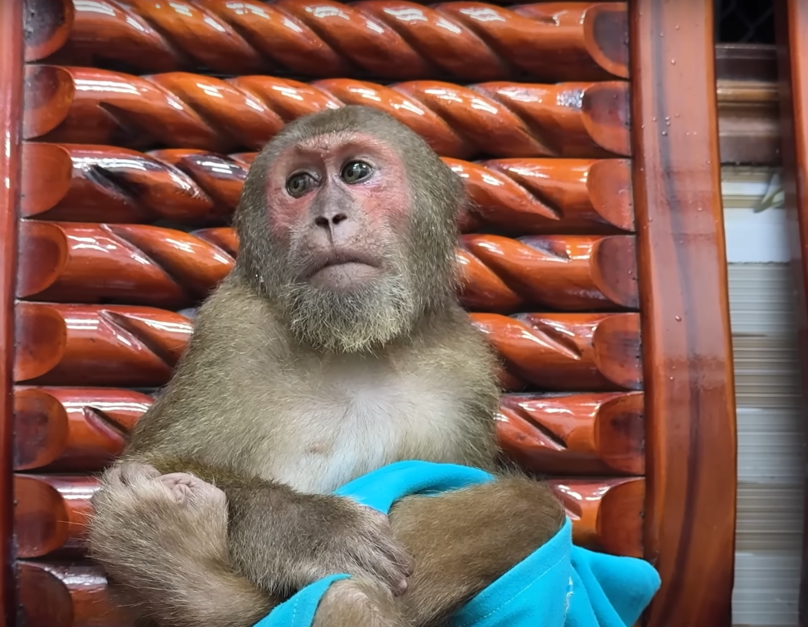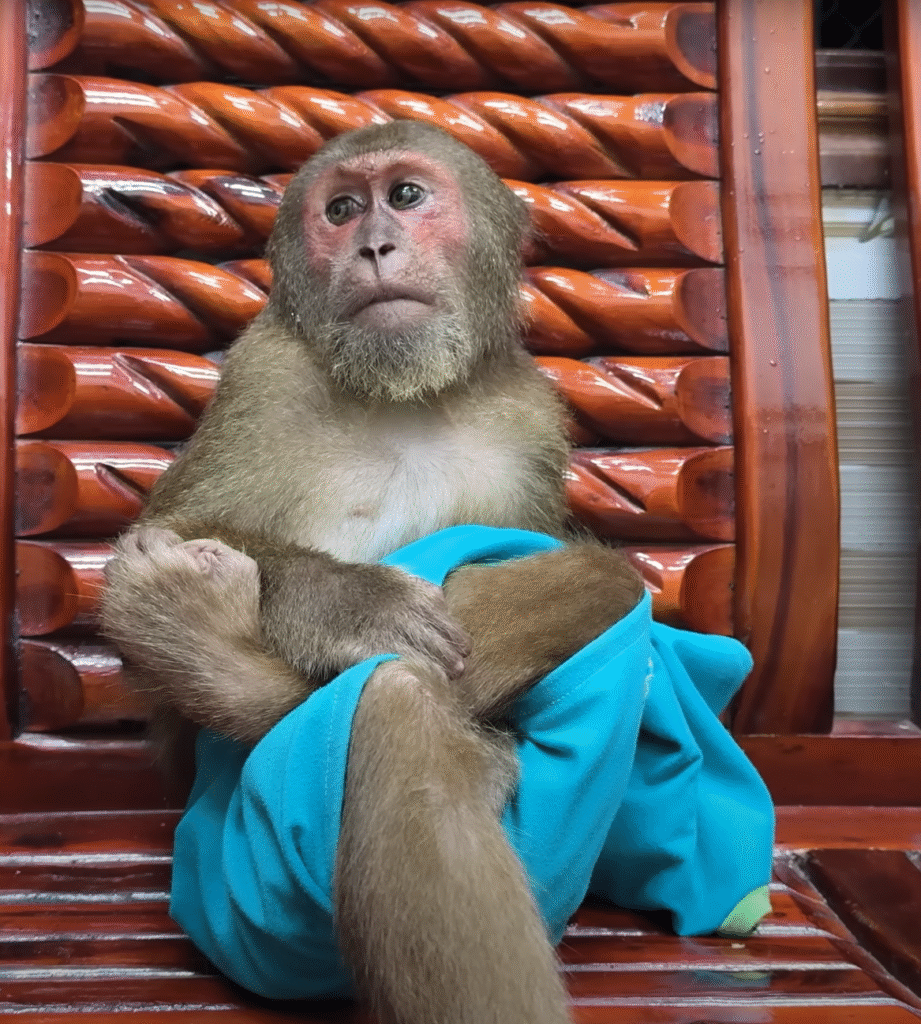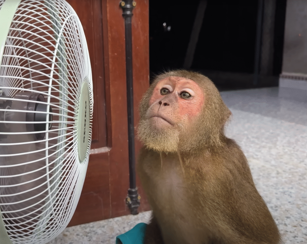 Dad Monkey, strong and calm, was grooming himself nearby while Baby Monkey played with water droplets on a big leaf. Life was peacefulâuntil CUTIS decided it was the perfect day for something special: bath time.