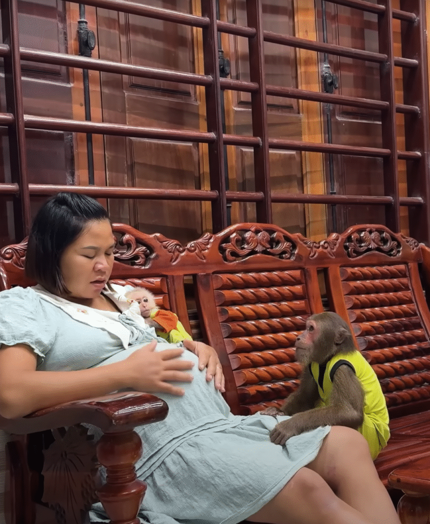 Baby monkey watched closely, his disbelief slowly turning into admiration. “Wow… you really know how to fix everything.”