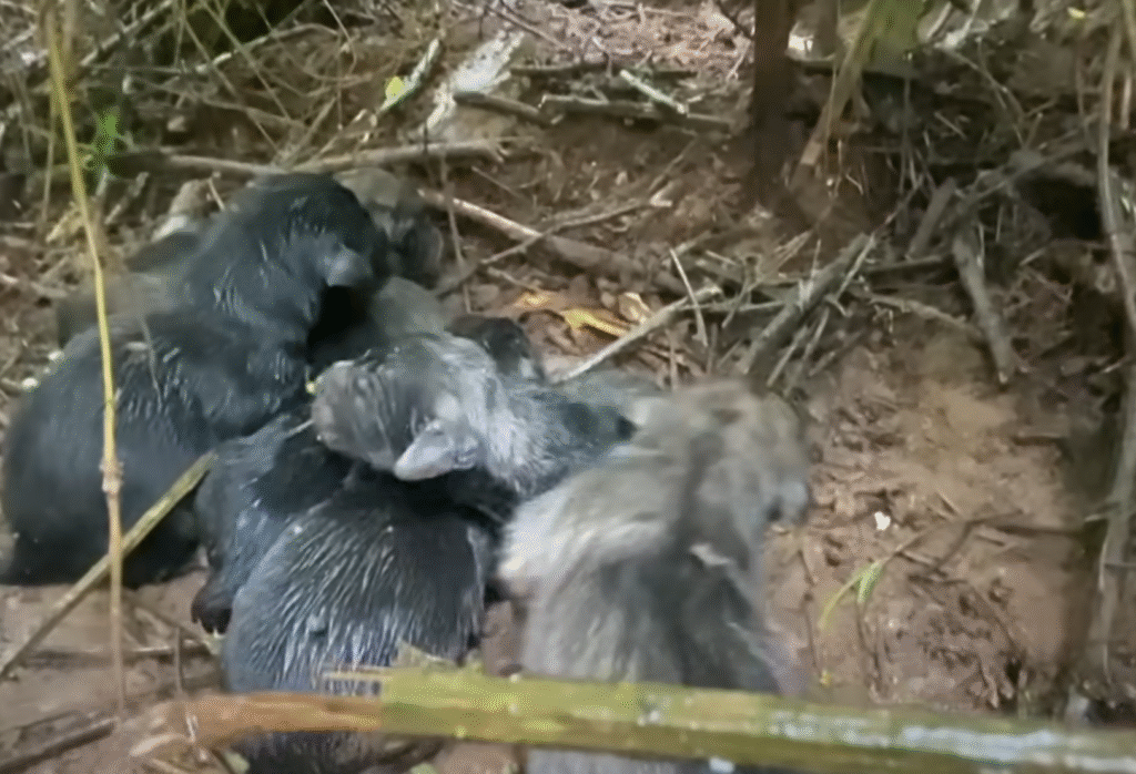 Finally, we reached a small, hidden area beneath the roots of an old tree. The mother paused and looked back at us, her eyes soft but urgent. Then, from within a tangle of leaves and soft moss, we caught sight of the babies. They were small, fragile, and just beginning to explore the world. Some were sleeping, others were stirring, curious about the humans who had followed their mother so carefully.