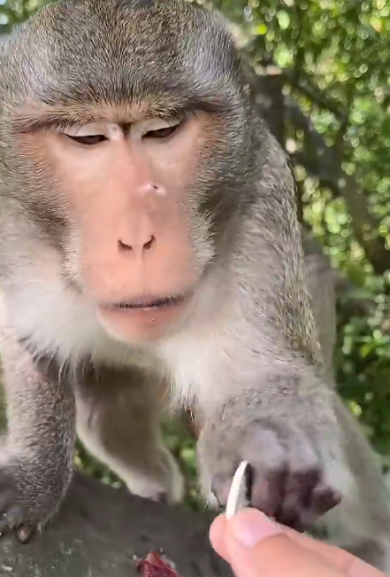 As the afternoon sun begins to set, it’s time for another treat. This time, the caregiver brings slices of watermelon, apples, and grapes. The monkeys’ excitement is off the charts! They line up eagerly, tiny hands reaching out impatiently.