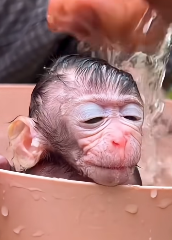 💗🐒 A baby monkey’s first bath isn’t just adorable — it’s a beautiful reminder of how kindness heals.