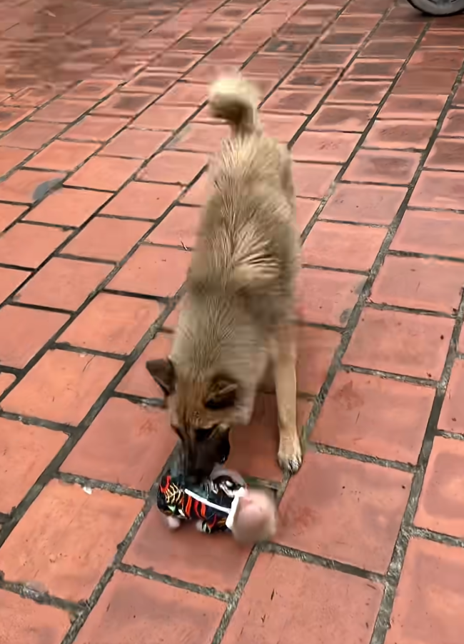 Lucky barked happily, picked up the peel, and ran in circles with it. That made Mama Yen laugh out loud.
