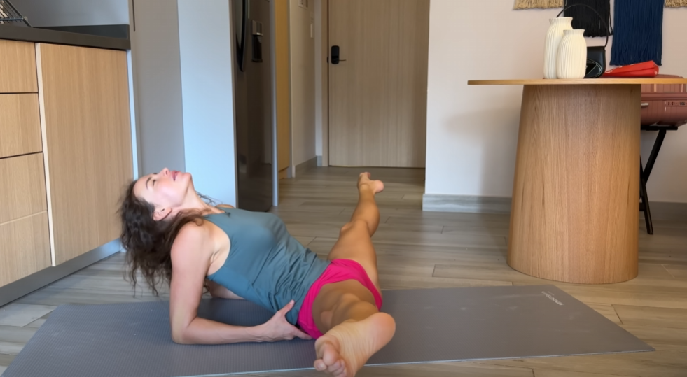 Finally, she incorporated single-leg glute bridges, lying on the mat and extending one leg while lifting the hips. “By adding balance to a strength exercise, we’re training both stability and flexibility simultaneously,” she explained.