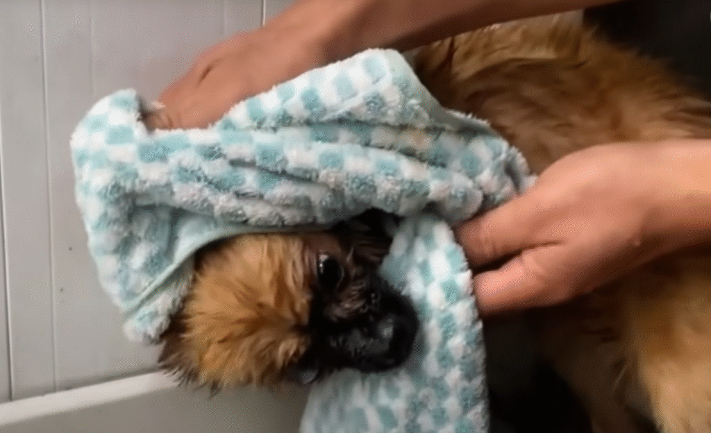 Inside, the lights glowed softly, and the smell of clean straw and dog food filled the air. Laura set the little dog on a dry towel and began to wipe away the mud. The dog’s good eye followed every motion—cautious, curious, but no longer terrified.