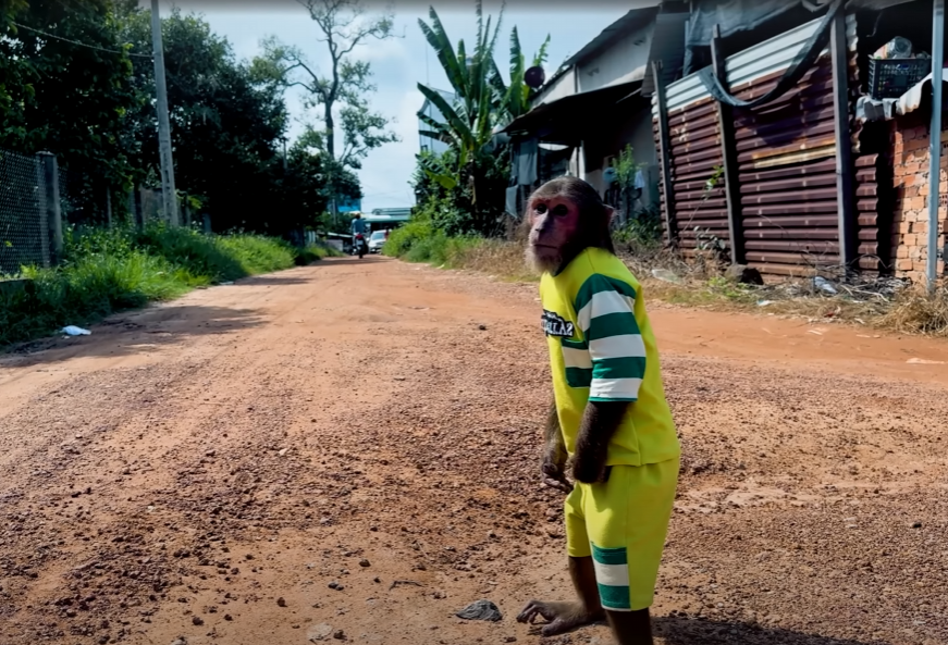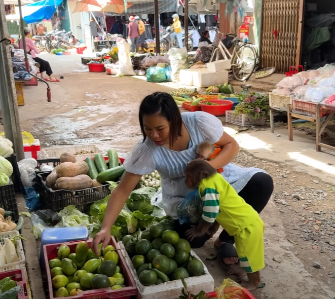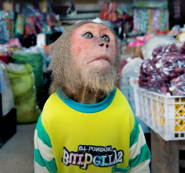 As soon as the two monkeys stepped into the market, people turned to look. CUTIS strutted confidently on two legs like a little human, while Lilo clung to his back, squeaking with excitement. Children pointed and laughed, while vendors chuckled.