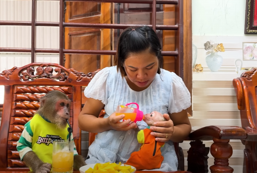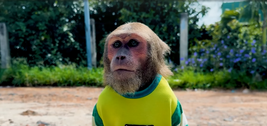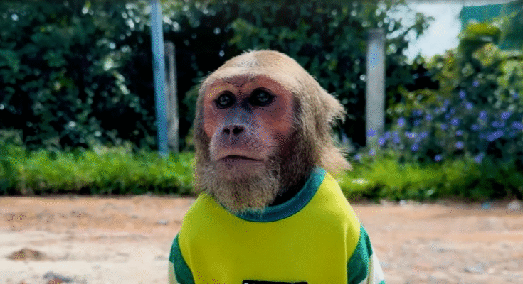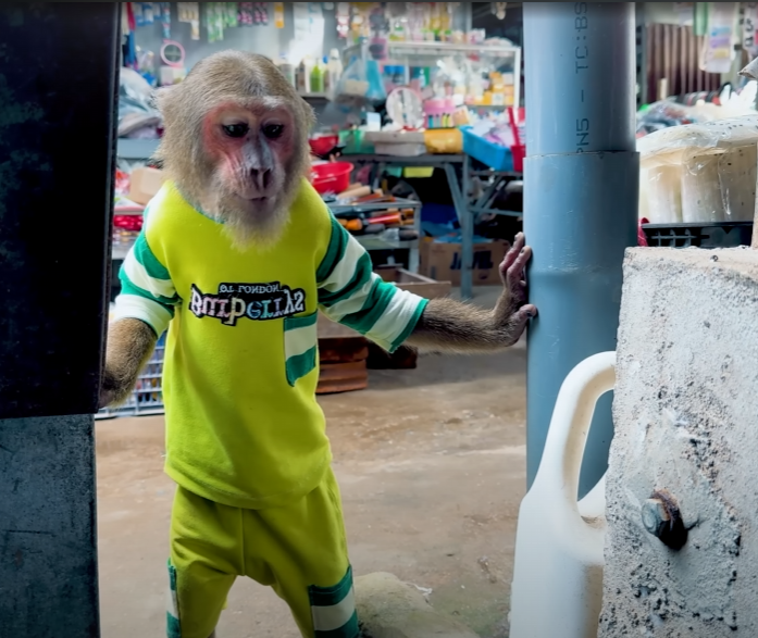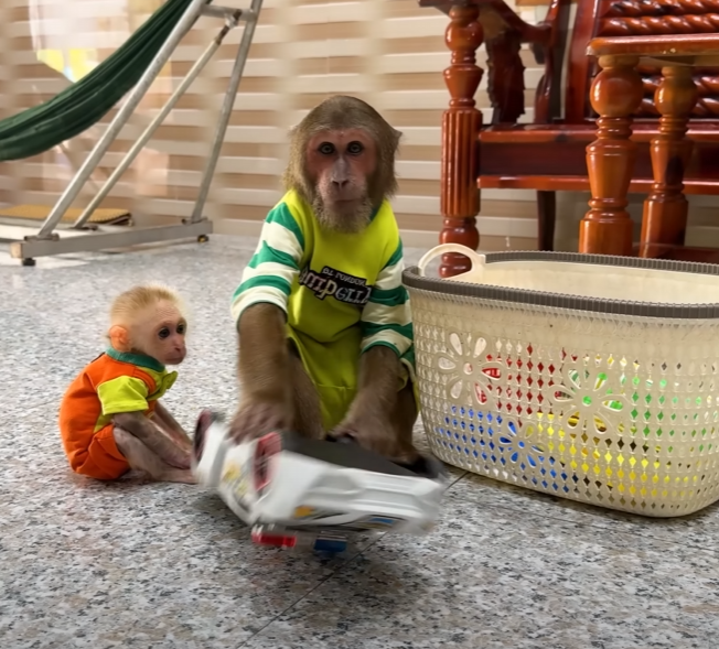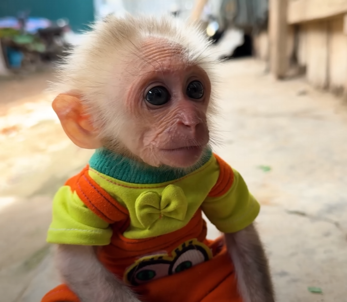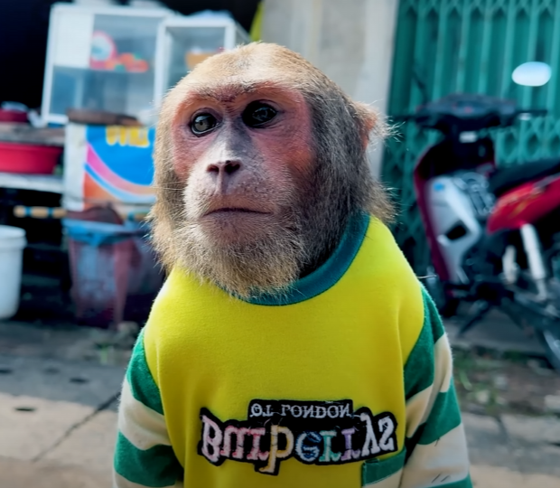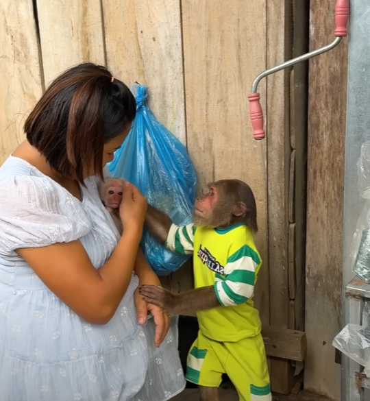 It was none other than CUTIS, the clever, bold monkey everyone loved, and his tiny sidekick, Lilo, the baby monkey who never left his side. The two had become local celebrities for their funny antics, especially after their last “business trip” when they traded Mom’s things for fruit. But this time, they weren’t there to cause trouble… or so they thought.