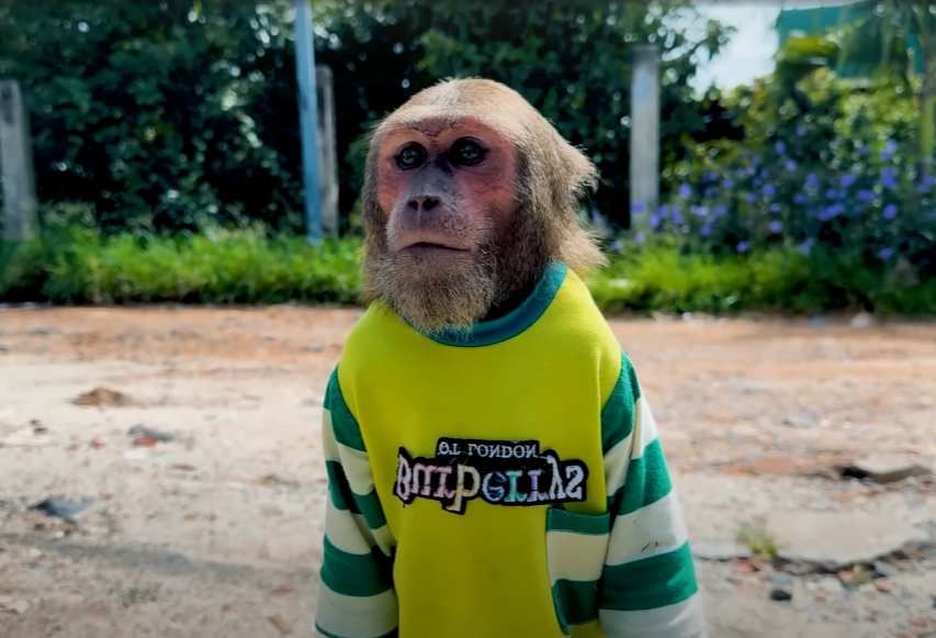 As the sun began to set, CUTIS lifted Lilo onto his back. They waved goodbye — or rather, CUTIS waved, and Lilo threw a peanut at the crowd. Everyone burst out laughing one last time as the two monkeys disappeared into the forest.