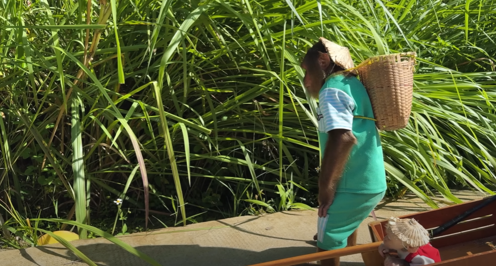 But CUTIS wasnât done yet. He took a few wildflowers from nearby, bright purple and white ones, and sprinkled their petals over the top for decoration. The result looked beautiful â a jungle delicacy made with love and monkey creativity.